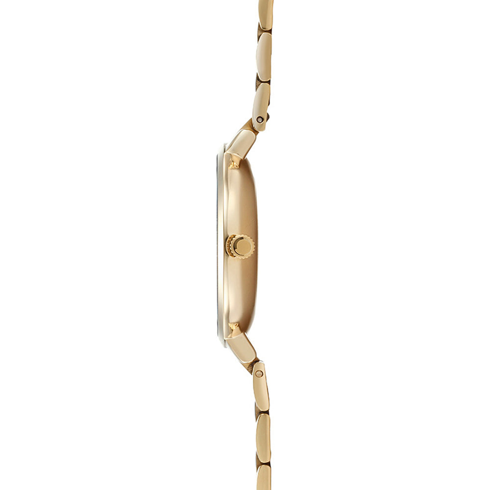 Own this women's analog watch from OBAKU's Glad Blackgold collection and keep yourself updated with the latest trends. The black mother of pearl round dial protected by a scratch-resistant glass showcases plain three hands, stone studded markings at five-minute intervals and a crown for time adjustment. The black stainless steel strap is complemented with a push button clasp that ensures a secure fit on the wrist. Club this water-resistant timekeeper with a black dress to fetch compliments from the peers.