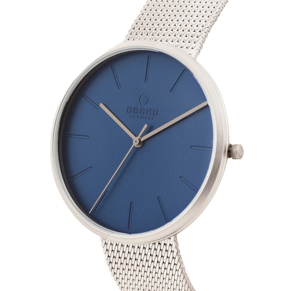 A modern and minimalist design in classic colors - that's the Hassel Cyan. The idea for this watch comes from our designer Lau Liengård Ruge. To achieve the perfect contrast effect, he combined a stainless steel mesh bracelet with a stainless steel case, a blue dial and steel-colored hands for the Hassel Cyan. Elegant colors, interpreted classically.