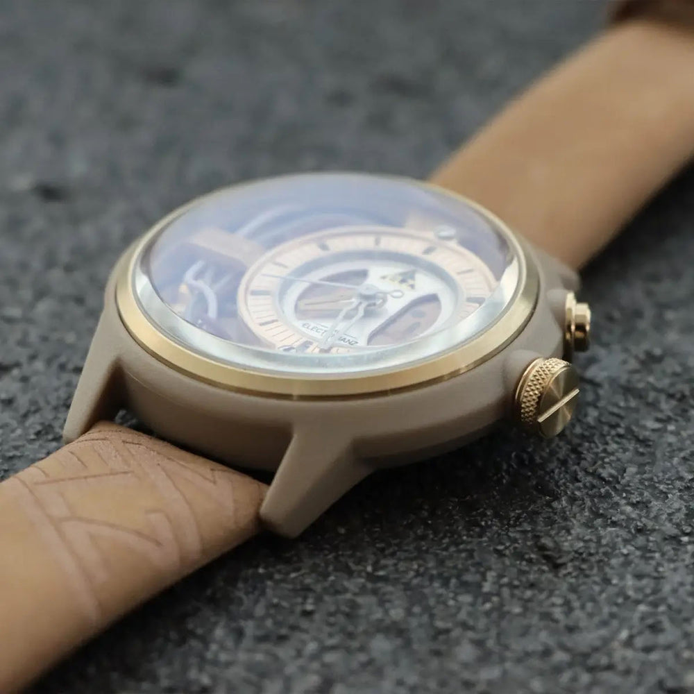 The Electricianz is about bringing top quality driven by Swiss know-how in watch design and technology . An ode to electricity now with a rubber edition strap. With the comfort of the rubber fused with the explosive bouquet of enmeshed